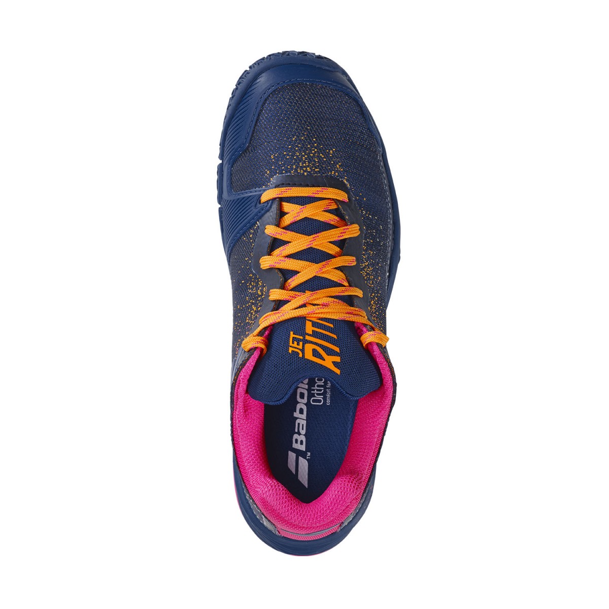 Кросівки для падел-тенісу Babolat Jet Ritma – це революція в спортивному спорядженні! Завдяки бажанню Babolat забезпечити таких гравців, як Вікторія Іглесіас, взуттям, яке найкраще підходить для їхнього виду спорту, вони співпрацювали з Mondo, виробником синтетичної трави для кортів для паделя, щоб представити вам Jet Ritma. Підошва повністю призначена для паделя та була перероблена для кращої адаптації до ґрунтових кортів. Для досягнення цієї мети глибину «ялинки» було збільшено, їх ширину зменшено, а шипи опущено, щоб покращити відведення піску та зменшити ковзання. Технологію Matryx також було оновлено до версії 2.0 з додаванням бічних ниток, які тримають стопу ближче до стопи. Амортизацію було зміщено далі назад, щоб краще поглинати удари від п'яти, завдяки KPRS-X, покращеній версії Kompressor. Це взуття Ritma, розроблене для жінок, має більш вузьку посадку, перероблену п'яту для полегшення переходу вперед та більш жіночний дизайн завдяки заниженій боковині.