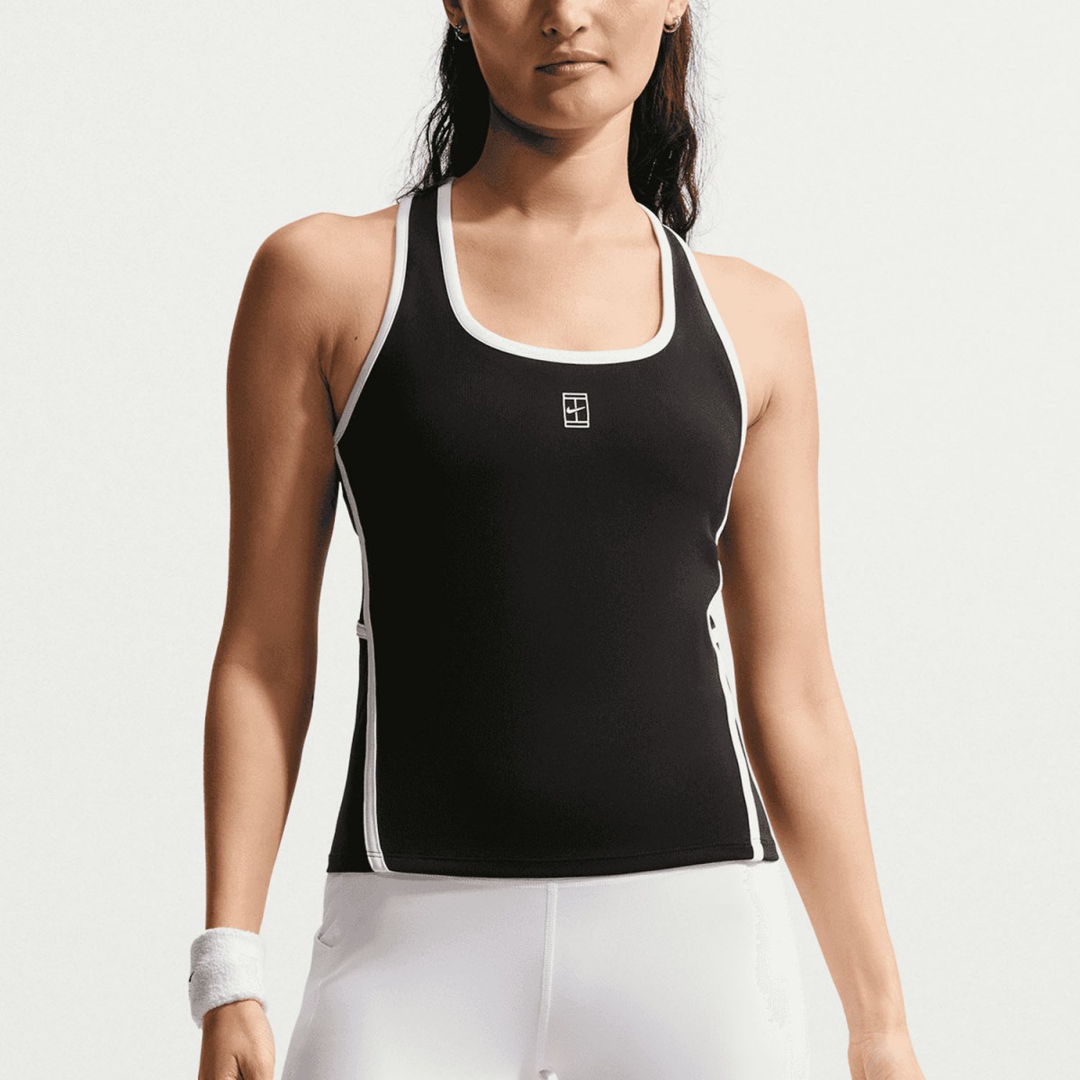 Тенісна майка жіноча Nike Court Advantage Novelty з легкого, еластичного матеріалу, який забезпечуює комфорт під час гри. Еластичні лямки та широкі вирізи на спині забезпечують свободу рухів, а контрастні шви додають стилю. Силіконовий логотип Nike розташований на грудях на тлі корту. Виготовлена ​​з використанням технології Dri-Fit для оптимальної повітропроникності та відведення вологи.