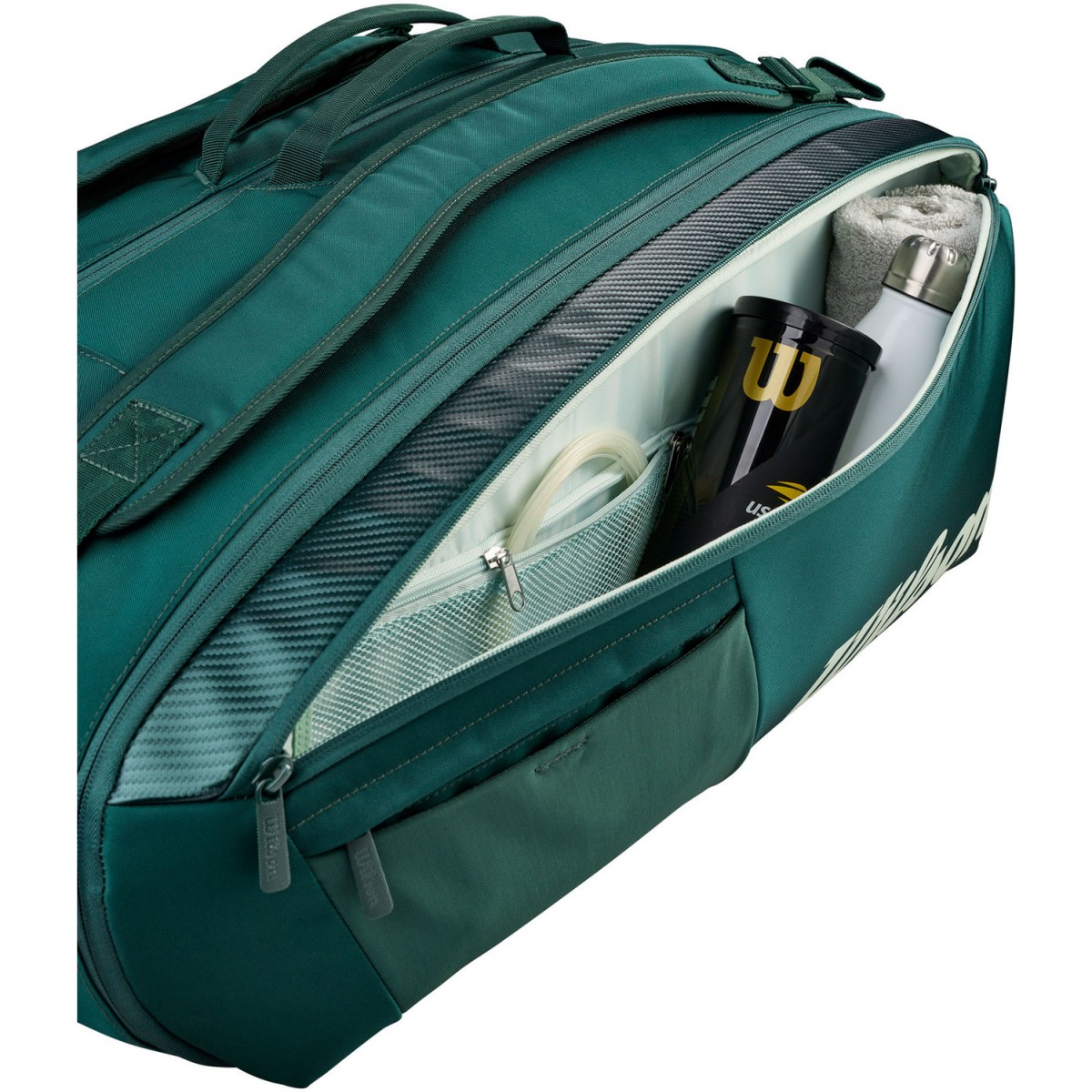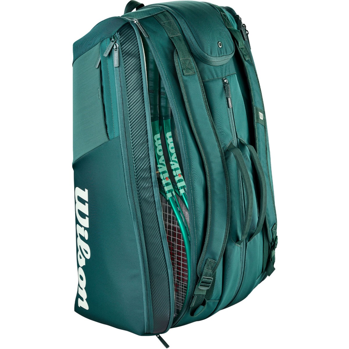 Тенісна сумка Wilson Blade Super Tour 15 Pk V10.0 – розроблена для гравців, які шукають місткість, організацію та захист свого спорядження. Простора та функціональна, вона дозволяє легко переносити все необхідне для тренувань та змагань. Її зелений колір, натхненний кольорами нової лінійки Blade, надає їй виразного сучасного вигляду як на корті, так і поза ним. Вона має 3 основні відділення, в яких можна помістити до 15 ракеток, а також одяг та аксесуари. Два з цих відділень мають підкладку Thermoguard для захисту спорядження від екстремальних температур. Сумка також має дві великі зовнішні бічні кишені для аксесуарів, невелику кишеню на блискавці для цінних речей та вентильовану кишеню для взуття, щоб решту ваших речей можна було зберігати окремо. Ергономічні, регульовані та м'які плечові ремені забезпечують оптимальний комфорт під час руху, як на спині, так і в руках.
